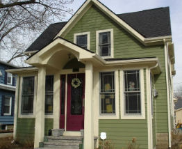 Siapa bilang warna hijau tidak dapat disandingkan dengan warna cream? Beberapa jenis warna hijau dapt berpadu dengan sempurna jika dikombinasikan dengan warna cream, salah satunya adalah hijau olive. Untuk menyempurnakan tampilan ini, mengecat pintu rumah dengan warna yanng mencolok seperti merah marun dapat menghadirkan focal point yang menarik.