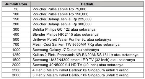 Setiap Kontraktor akan mendapatkan hadiah dari poin yang didapatkan sesuai dengan skema program dengan nilai terendah adalah 50 poin dan tertinggi adalah 3.000 poin.